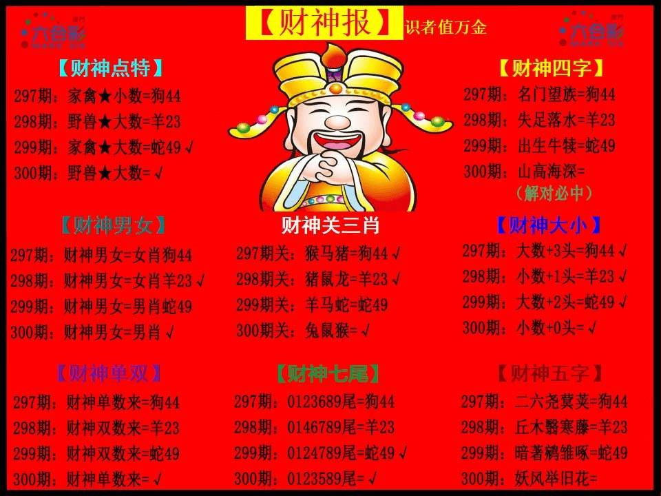 | 300期 | 蛇 | 2头 | 7尾 | ?00 |